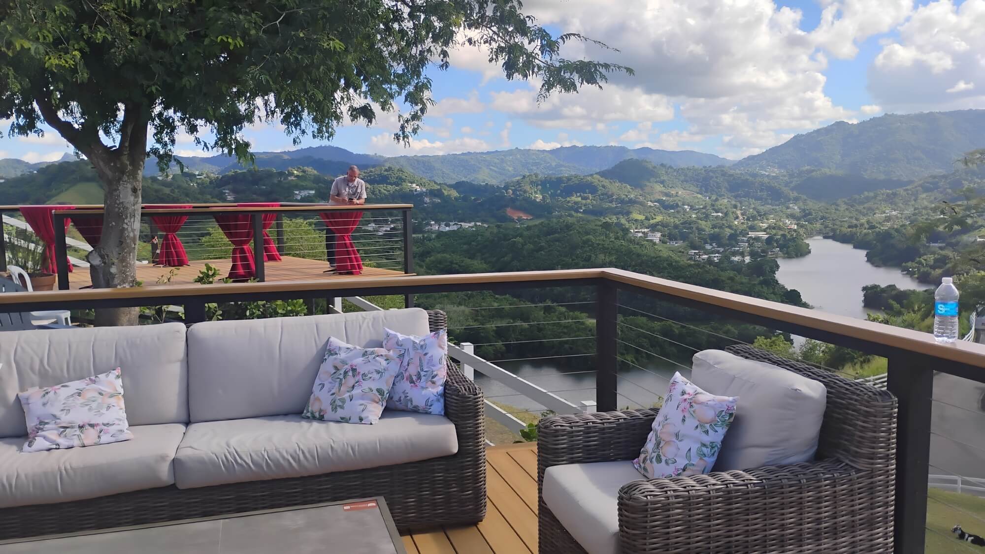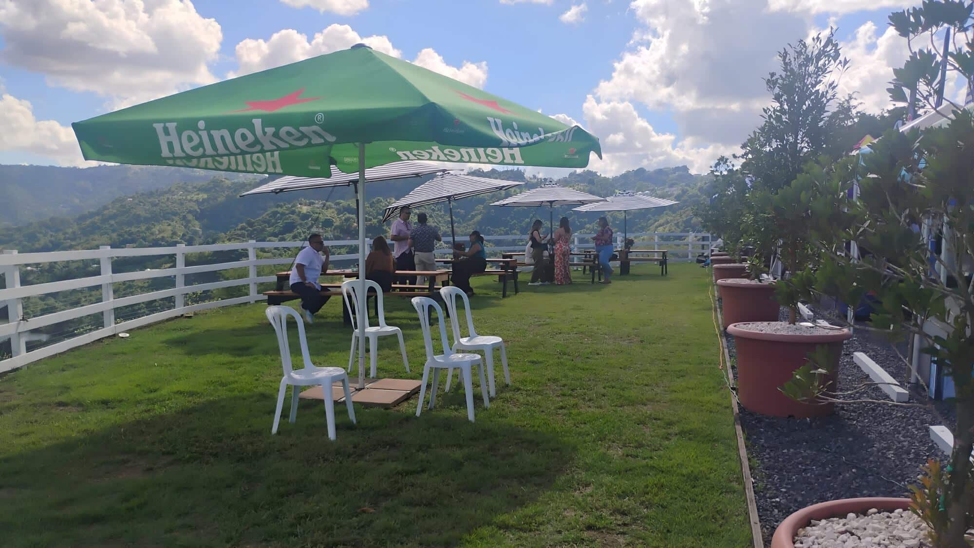 The defining feature of this hacienda is its privileged location overlooking the river, with panoramic views of the Toa Alta hills. The main terrace is designed to take full advantage of this landscape: when you exchange your vows at sunset, the golden light on the water creates a moment that no decoration can match.