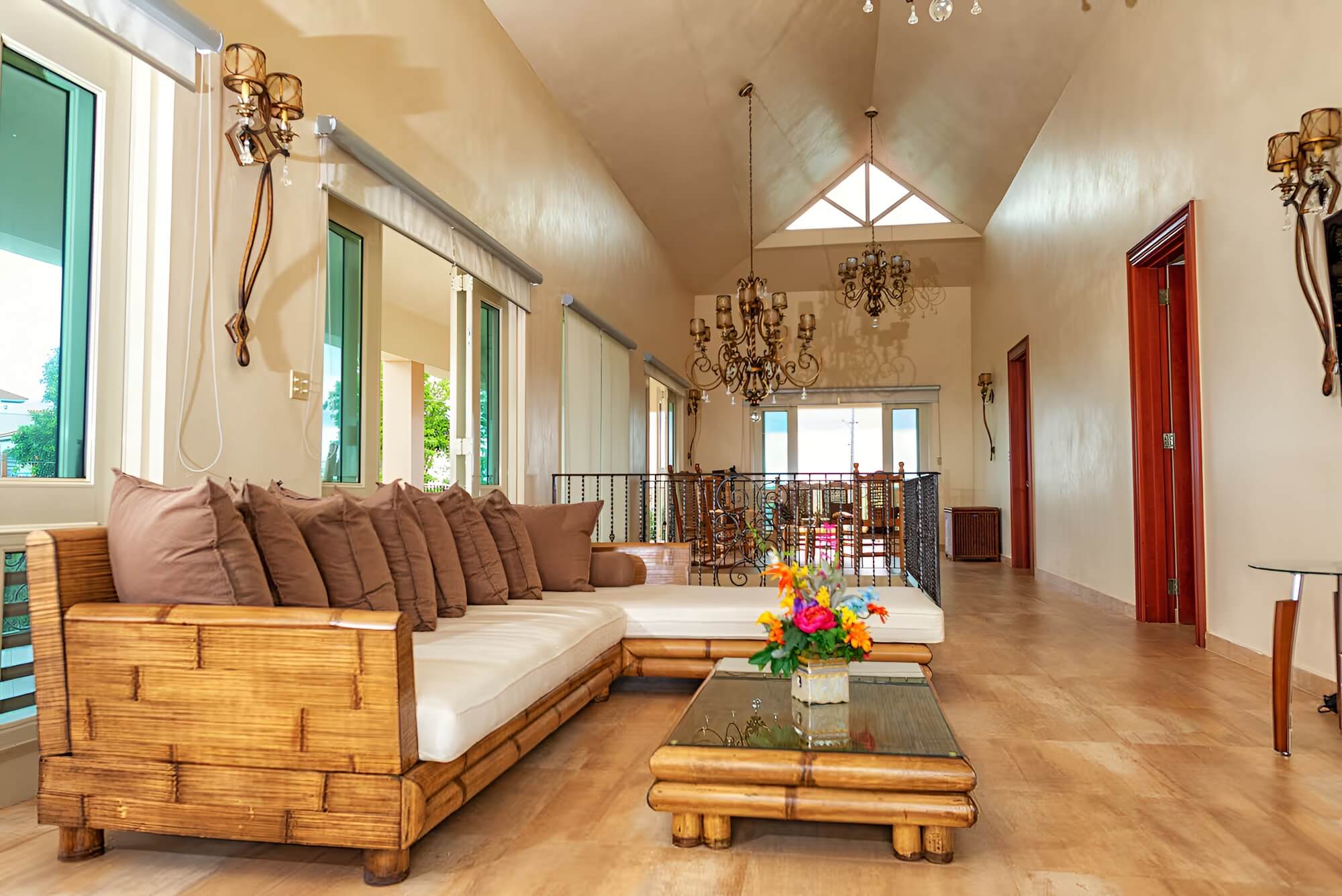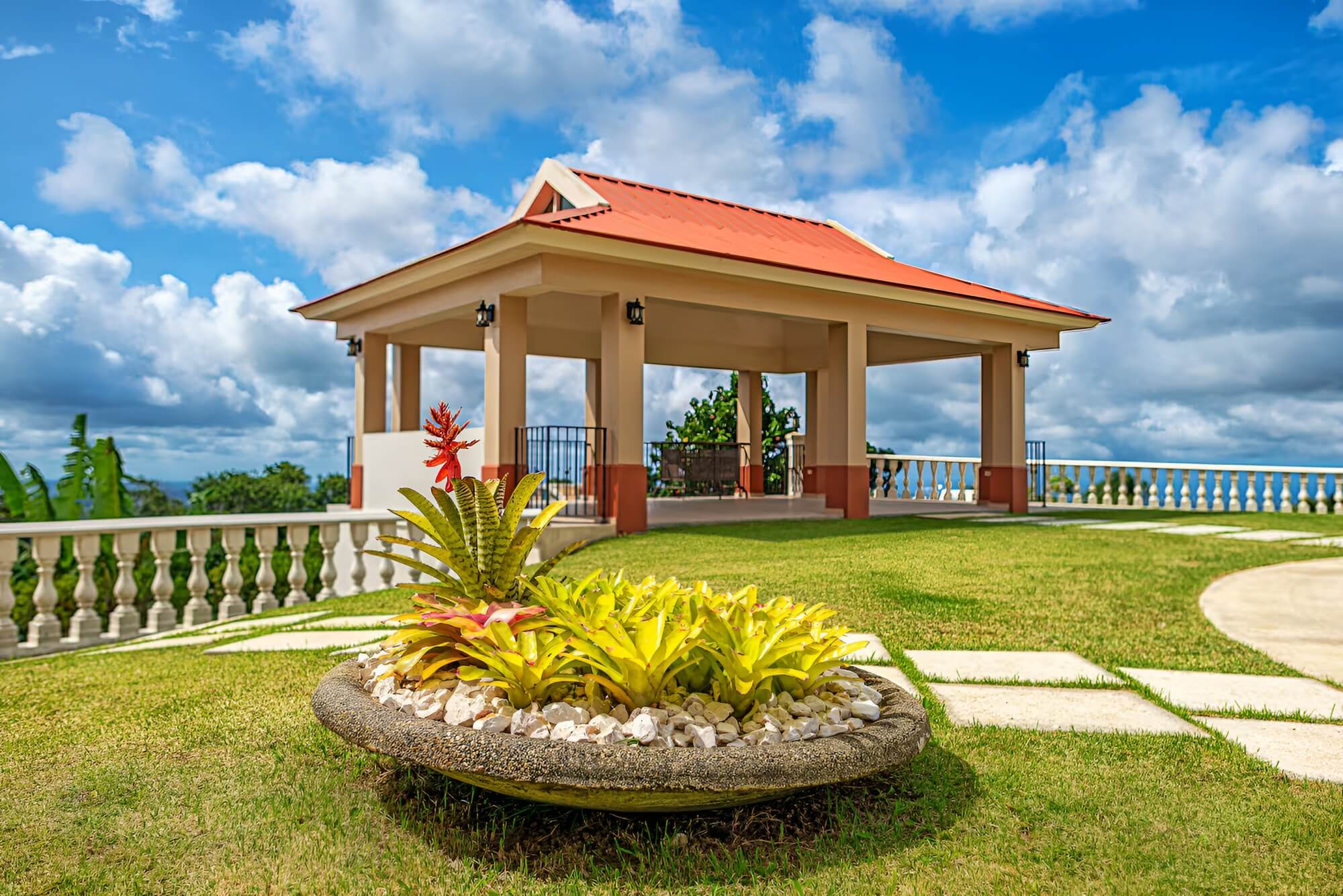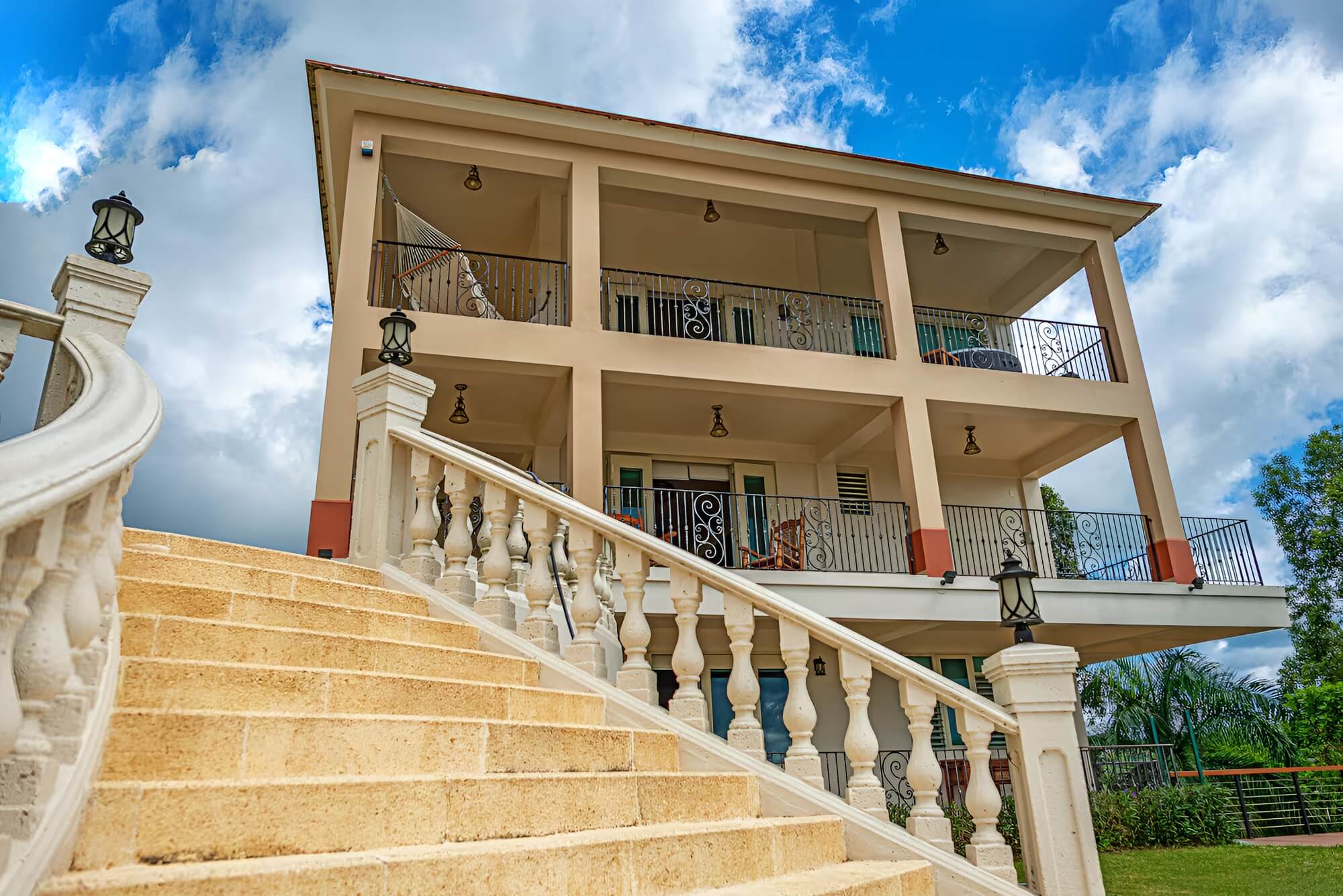The villa has that stately hacienda style that makes the photos look like they're straight out of a magazine. Spacious balconies, elevated terraces with open mountain views, manicured gardens with fountains as focal points. Every corner is designed to look its best, meaning less investment in decoration to achieve the same impact.