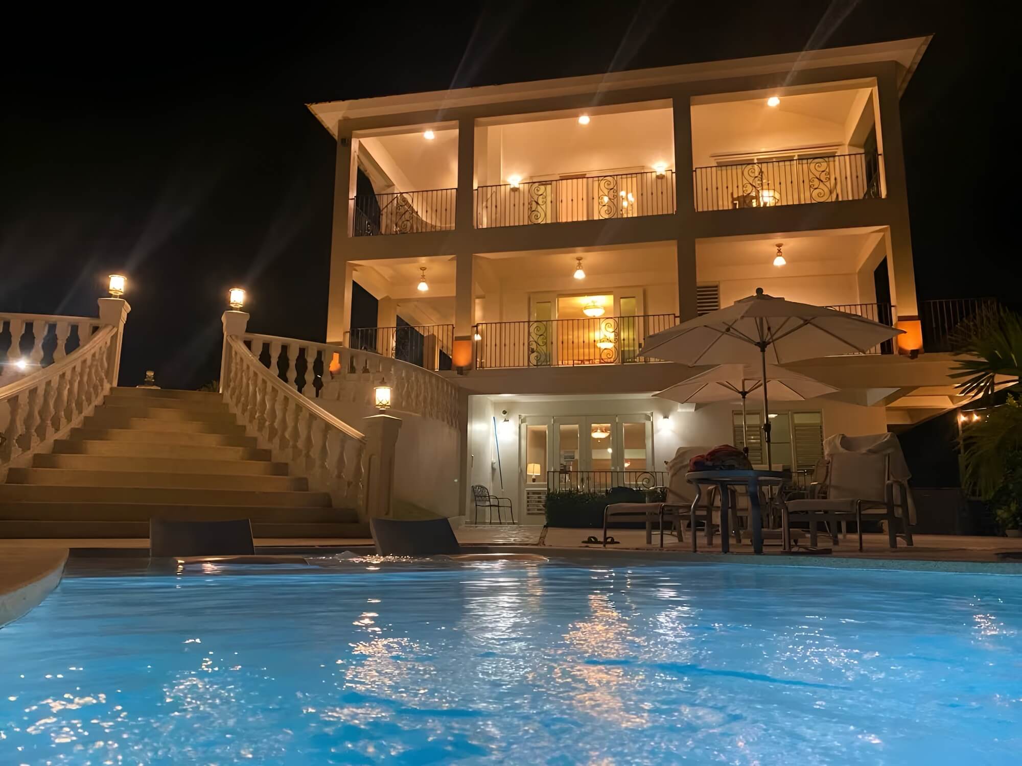 The front gardens are perfect for the ceremony, with the mountains as a backdrop and the sunset working its magic. The cocktail hour can move to the side terraces while the reception space is being prepared. And as night falls, the illuminated balconies create that elegant celebratory atmosphere that defines this venue.