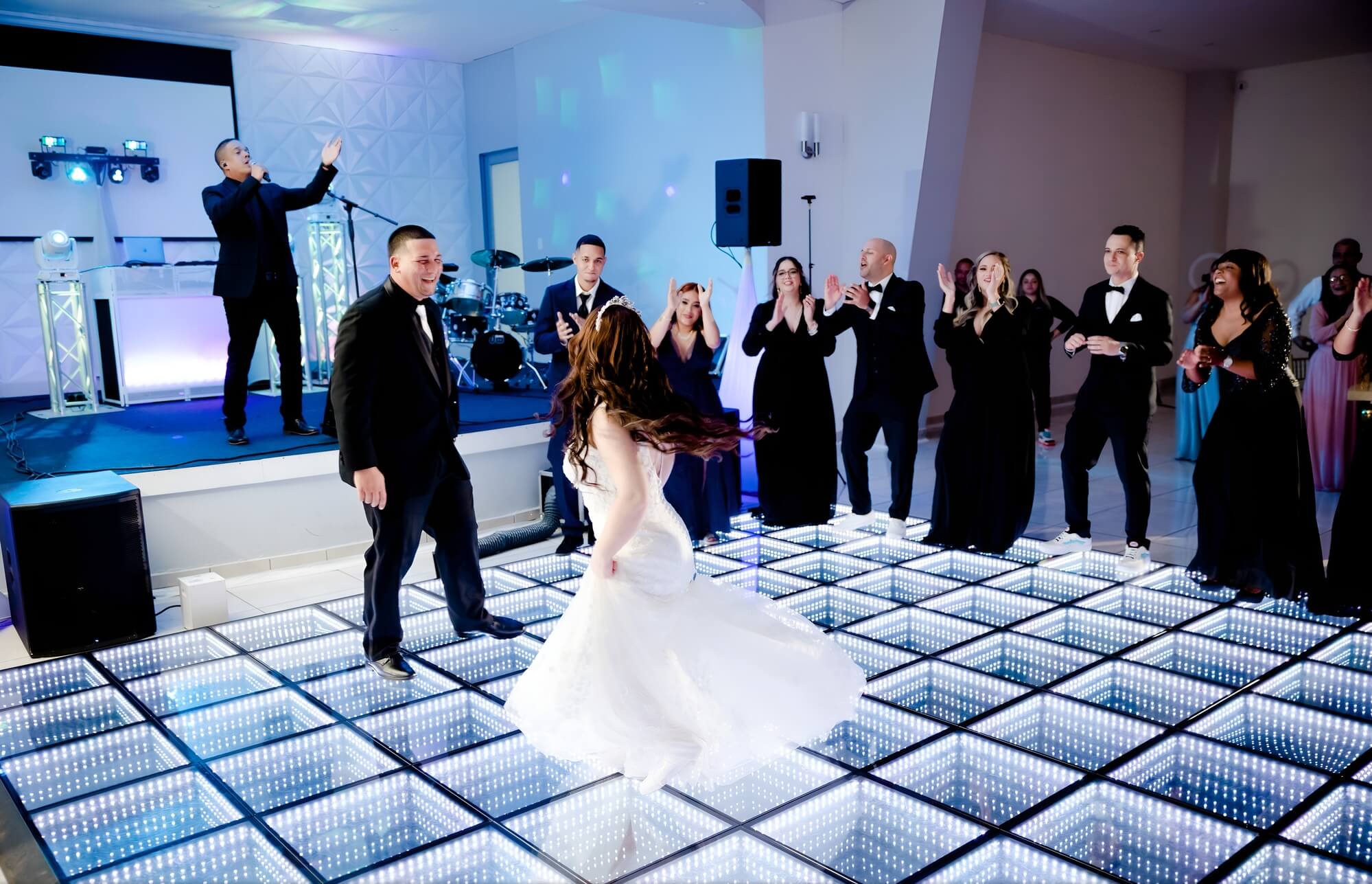 Una boda para 400+ invitados tiene una logística completamente diferente a una boda íntima: flujo de personas, sonido para que todos escuchen, coordinación de mesas, timing del servicio. Hemos trabajado en eventos de este tamaño y sabemos cómo planificar una celebración grande que funcione sin caos, donde cada invitado se sienta atendido aunque sean cientos.